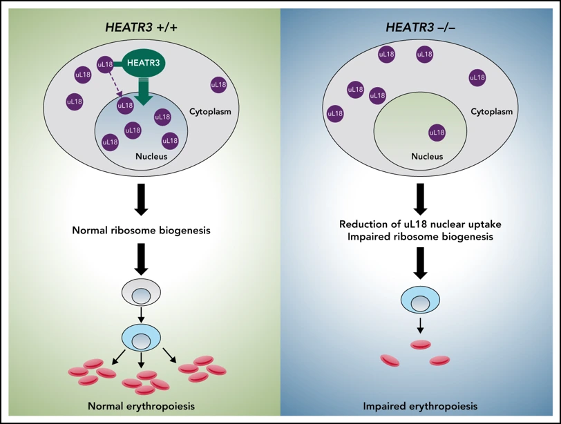 – O’Donohue MF et al. (2022) HEATR3 variants impair nuclear import of uL18 (RPL5) and drives a Diamond-Blackfan anemia syndrome in humans. Blood 139:3111-26