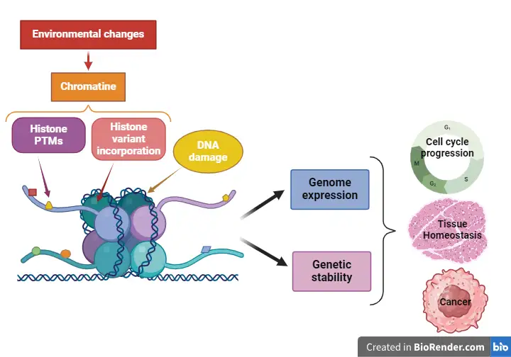 H2A.Z est enrichi autour du site de démarrage de la transcription des gènes actifs et joue un rôle majeur dans le contrôle de la transcription de gènes spécifiques, régulant ainsi le destin cellulaire. H2A.Z semble également être nécessaire au maintien de l’information génétique. En effet, outre un rôle encore controversé dans la réparation des cassures double-brin de l’ADN, une fonction de H2A.Z dans la mitose et la réplication de l’ADN en phase S a été suggérée. Il est important de noter que les isoformes H2A.Z ou leurs régulateurs ont été trouvés surexprimés ou mutés dans de nombreux cancers.